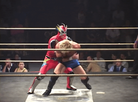 His first match with DDT is with another Kenny, Kenny Ohka, against HERO! & HERO! They’re the second match of the night at a show produced by HARASHIMA. This would have been his first real chance to display his skills to the DDT audience, and he uses the opportunity to show off his amazing athletic ability, as well as his sense of humor – the match is riddled with in-ring theatrics and general silliness.