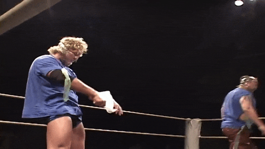 This is a pretty weird one, even by DDT standards…or maybe not. Anyway, Omega and his tag partner wear plastic wrap on their faces, and torture their opponents with a basket of kitchen utensils and tape.
