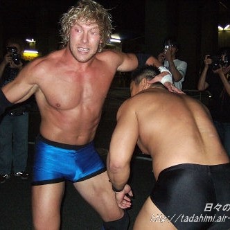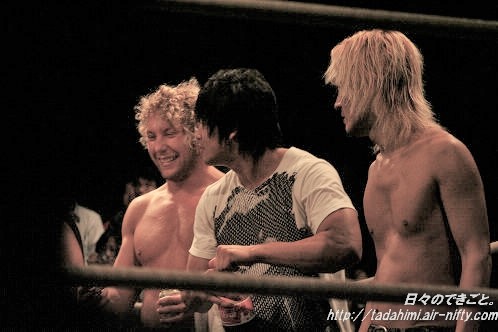 Kenny seems exhausted, but pleased with the match against the DDT promoter Takagi.