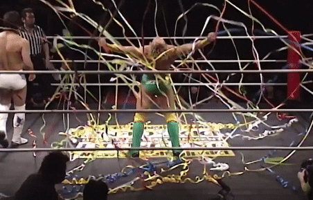 January 28: Ibushi was in a four way tag match for BJW. He and Madoka defeat Makoto Oishi & Shiori Asahi, MEN’s Teioh & Shinobu, and Hercules Senga & Tsutomu Oosugi. [photo credit]. During the match, Ibushi uses Kenny’s Hadouken on his opponents.