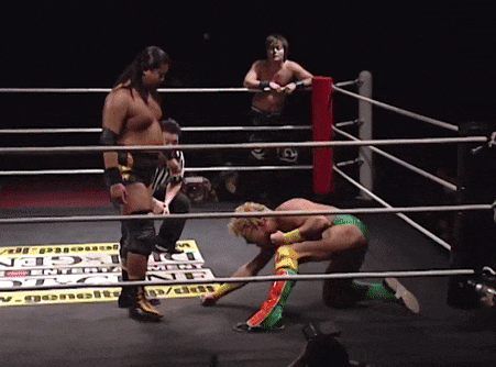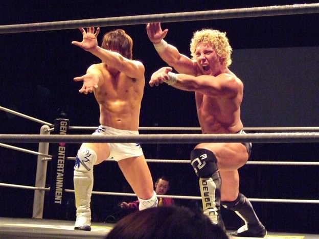 January 13th Kenny, Kota, and Michael do a little wrestling practice at the DDT dojo, and Kenny tells him “I want to develop a tag team with Ibushi and a special move!”