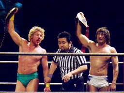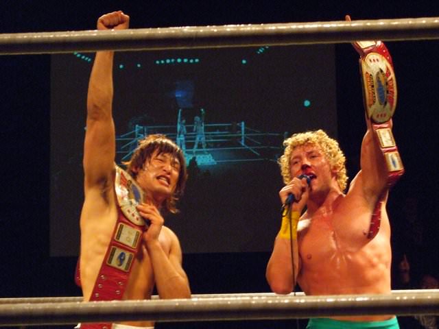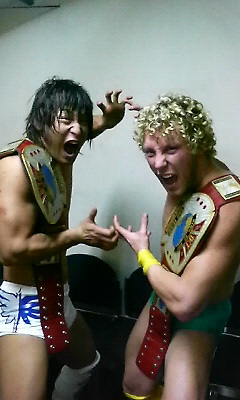 New KO-D Tag Team Champs!! After hugging, each of them state they are glad to have the titles as a tag team with each other. Then Ibushi states his intention to go against Takagi next, for his Openweight title.