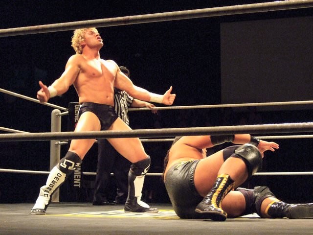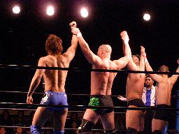 Kenny wins! He uses Michael as translator to talk to the crowd a bit after the victory. He asks everyone to continue supporting indie wrestling, and states he had wanted a match against DSL since he first saw him. DSL states the match was fun and made possible because of Kenny.