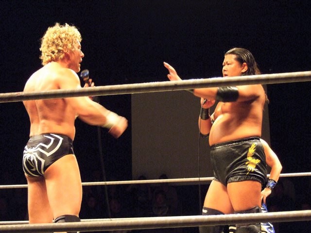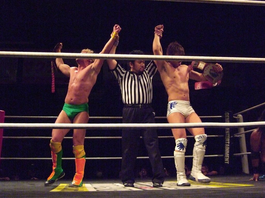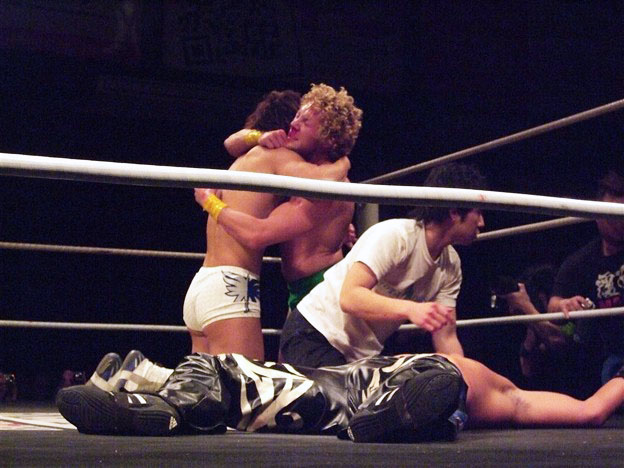 He and Michael play some games with the DDT fans in attendance, then they try to auction off dates with Kenny and Ibushi. Not sure who won – sounds like some high dollar amounts were involved.