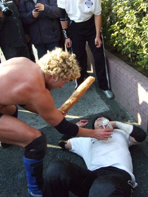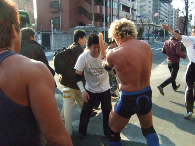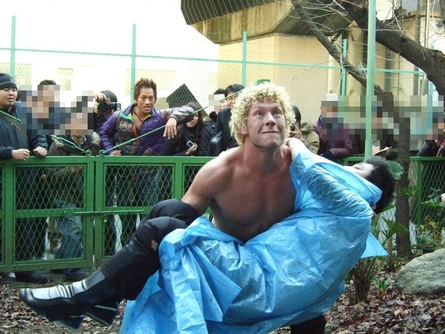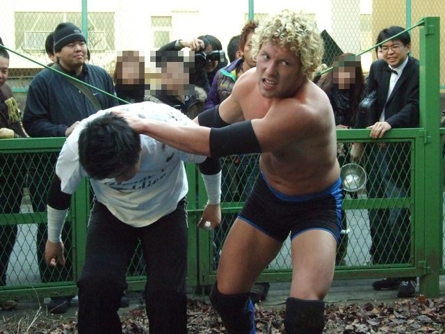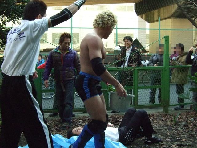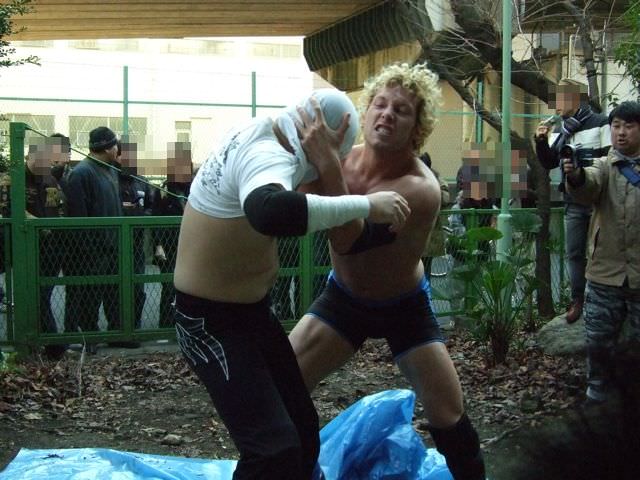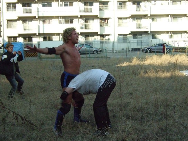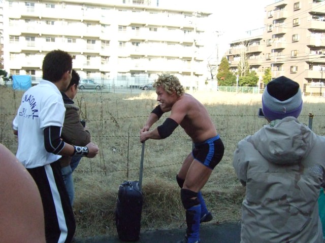 January 12: Kenny participated in a one match show, wrestling in an open vacant lot against Dragon Soldier LAW (DSL). According to Nakazawa, “a lot of dead grass and spiky plant seeds got stuck in Kenny’s back due to the fight in the vacant lot.” There was about 70 spectators for it.