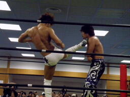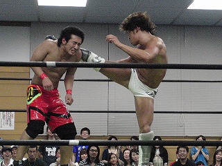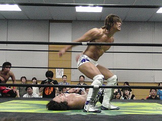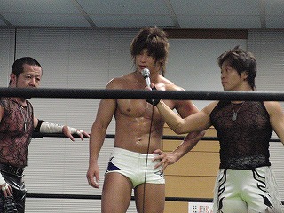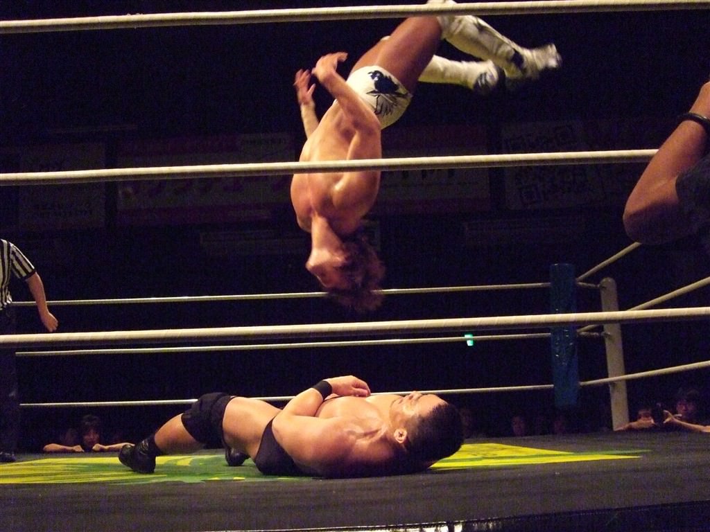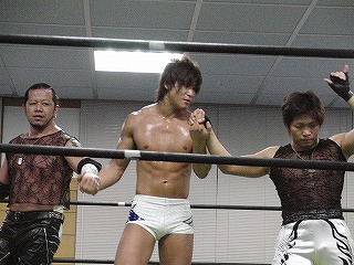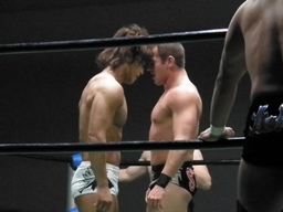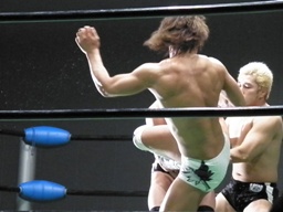 July 26 there was a DDT show at the Nakamura Center in Nagoya. Ibushi was in the 5th match of the show, a 6-man tag with MIKAMI, Jun Kasai as his partners.