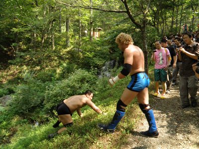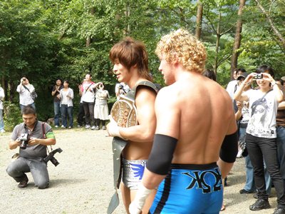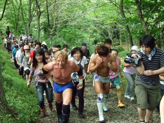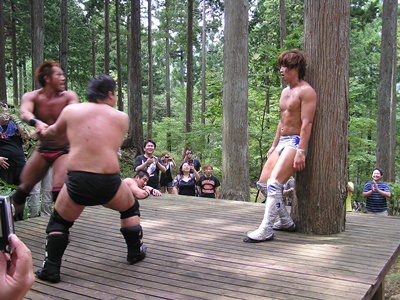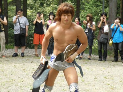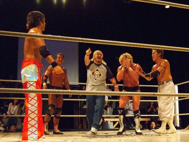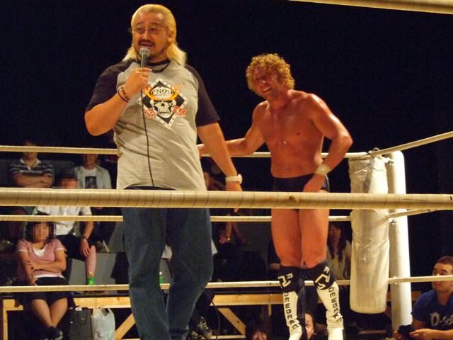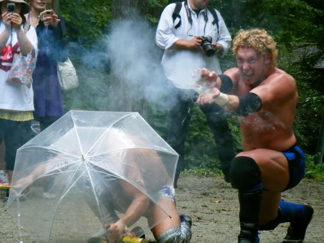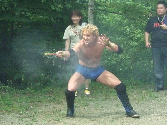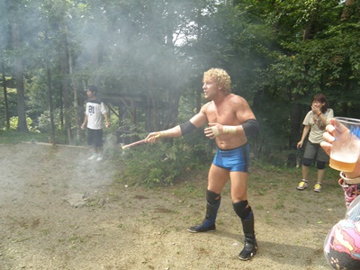 September 6: This match took place in the mountains of Yamanashi, and drew a crowd of about 200 spectators, apparently double last year’s numbers. This was Kenny’s first campground show. Ibushi does them every year, because of course he does. He purchased the fireworks he set off throughout the show with his own money. Nakazawa was burned by some of them, upsetting his wife.
