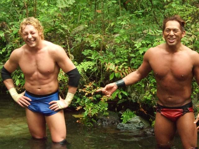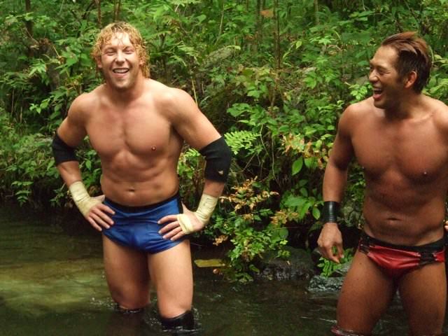 The Golden Lovers were walking outside and Kenny spots a spider he says he’s never seen in Canada. Ibushi takes a picture of him looking at it.