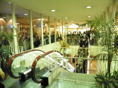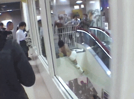 On the 12th he is in a shopping mall match, where the wrestlers find themselves on multiple levels of the mall, riding the escalator and slow-chasing each other around some confused shoppers. Ibushi winds up hanging off the wall near an escalator, because, Ibushi.