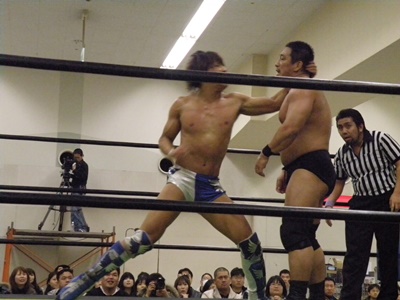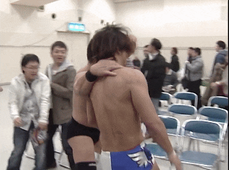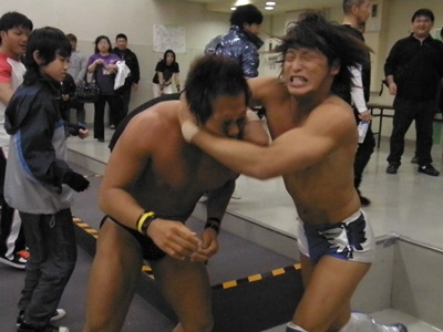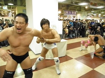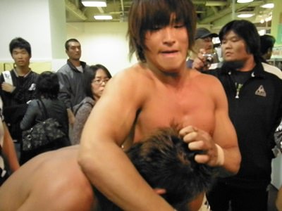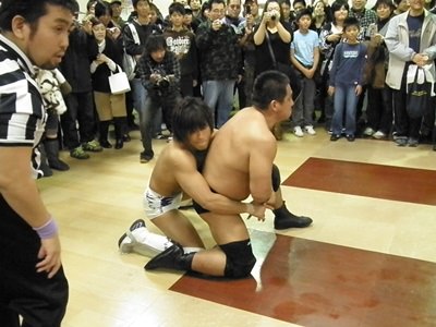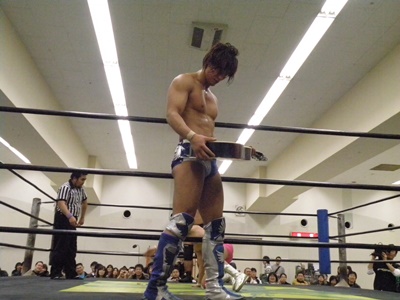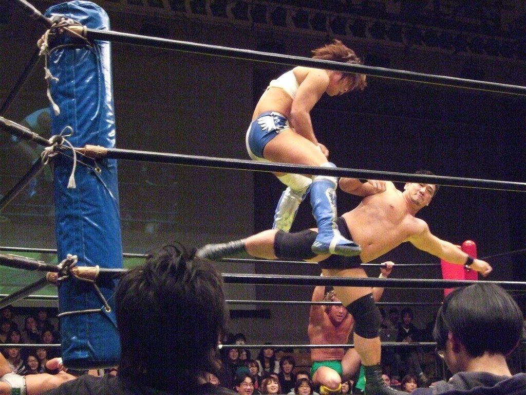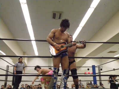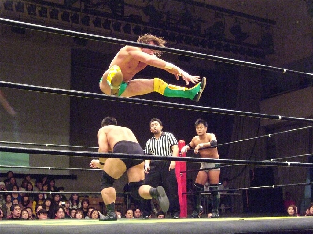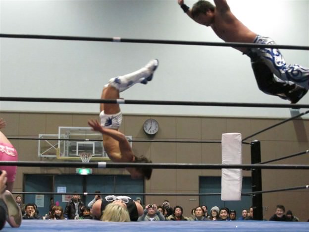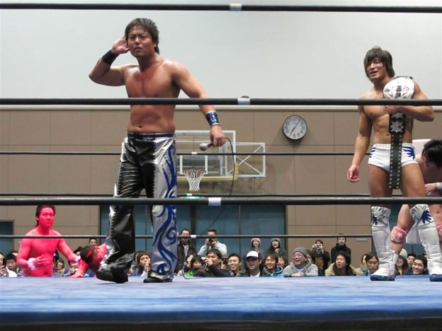 He also wrestled a DDT show in a gymnasium as part of the main event six-man tag match.