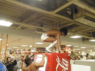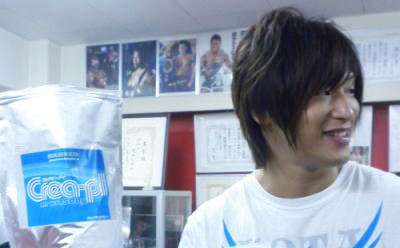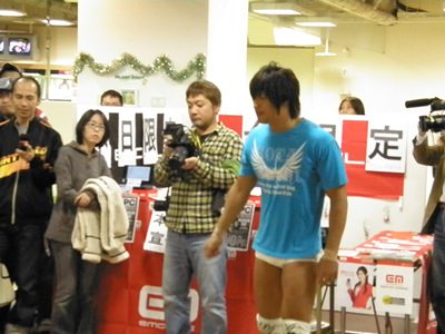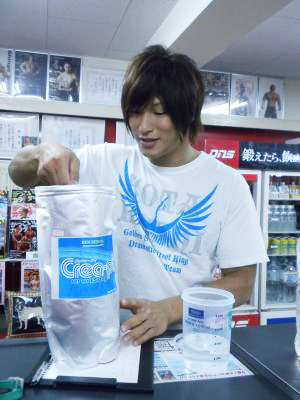 That same day, Ibushi is spotted at Midbreath Gym, mixing up a pre-workout beverage at the recommendation/urging of some of the gym employees. They probably sell the stuff there.
