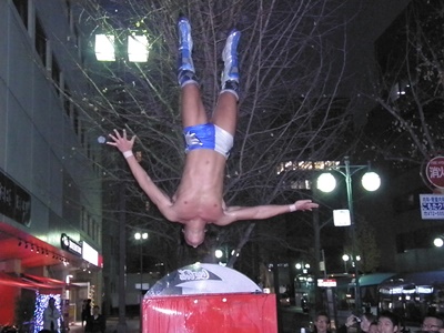 The next day he wrestles at Hakata Starlanes in Fukuoka, a venue that has since closed.