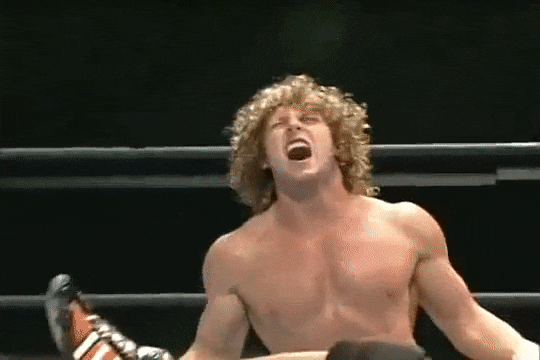 January 24 is the DDT January Special. In an unusual swerve, the Golden Lovers are placed on opposing tag teams, Kenny partnering with Yukihiro Abe and Kota with Gota Ihashi. But the two men aren’t used to being on opposing sides, and the ref has to stop Kenny from saving Kota from being kicked by his own partner. Then when it is Kota’s turn to put Kenny in a chokehold, he gives him the softest most gentle hold, basically an in-ring cuddle. No sirs, these two men just cannot bring themselves to fight each other.