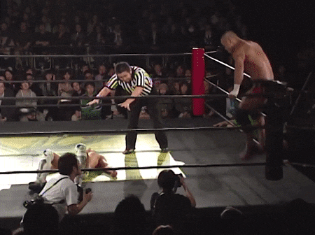 After the show’s main event – Sekimoto vs Takanashi – Ibushi is nominated by Mr. Sekimoto as his next challenger, and he willingly accepts: