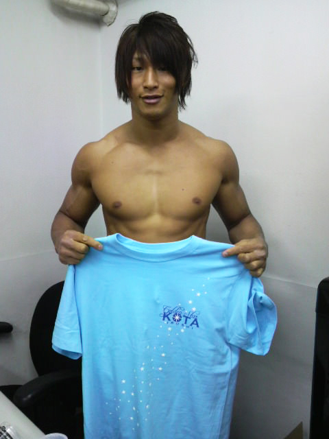 Here is Ibushi, showing off one of his new merch shirt designs at the DDT office: