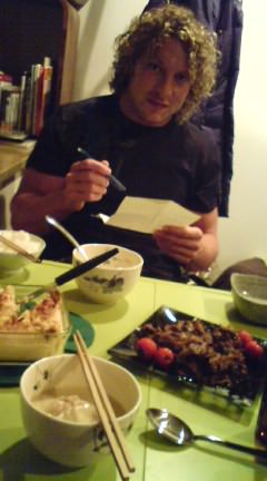April 17th, Kenny goes over to Nakazawa’s house for dinner. Kenny had recently been complaining that he had been stuck eating only convenience store food, so Nakazawa’s wife offered to cook for him. While there, Nakazawa teaches Kenny some more Japanese.