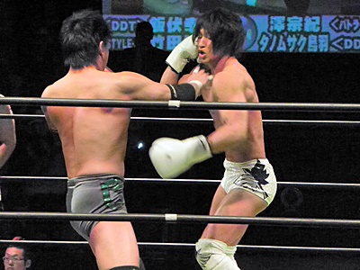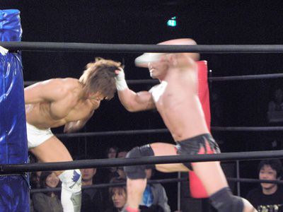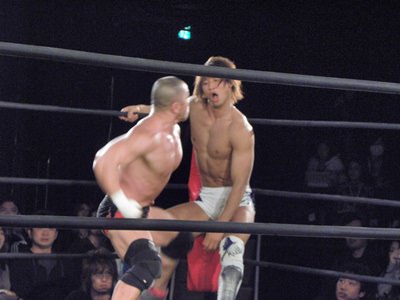 Here are a few pics courtesy of Extreme Party’s blog archive of Ibushi and his opponent beating the shit out of each other: