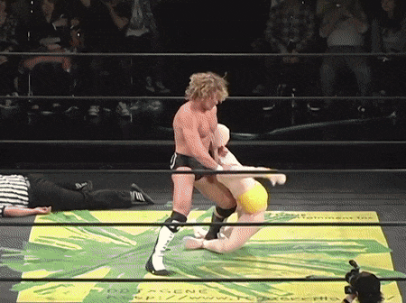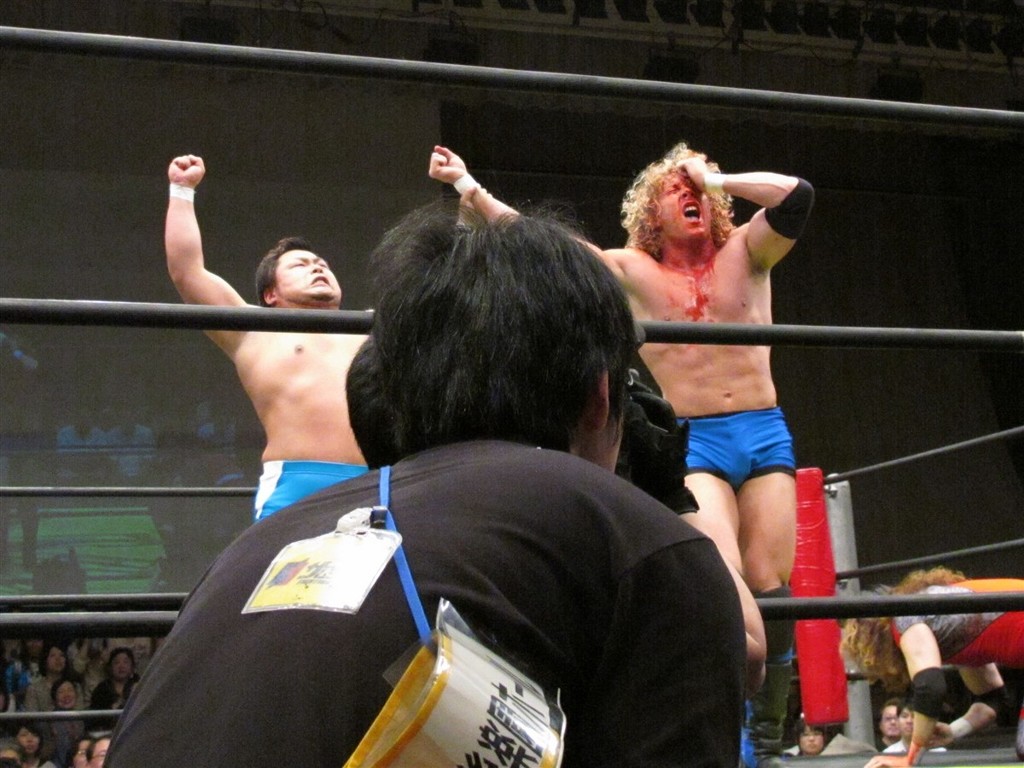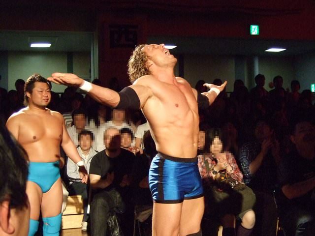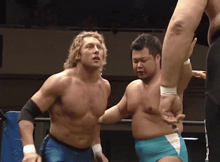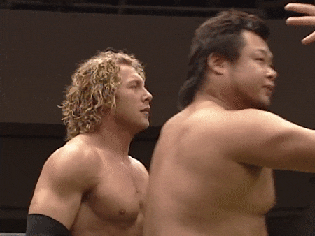 May 8th Ibushi participates in New Japan’s Super Junior tournament, tag teaming with Austin Creed (aka Xavier Woods), future gamer friend of Omega. They lose to Gedo and KUSHIDA. Ibushi makes a face after the show, and I’m uncertain what he means when he tells Matsui about working with Creed: “I’m sorry, I cheated on him…I’ve been unfaithful.” I’m unsure what happened in this match to make Ibushi feel unfaithful. That was the first and last time he has ever tagged with Creed/Woods.