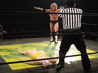 Kenny rolls up Poison Sawada JULIE into a nice little pin: