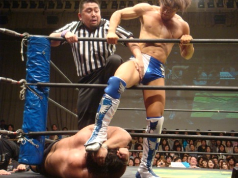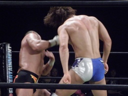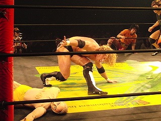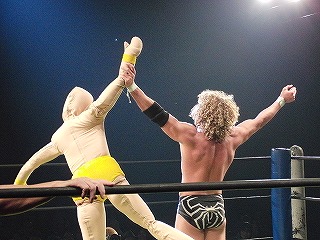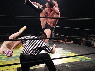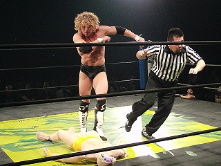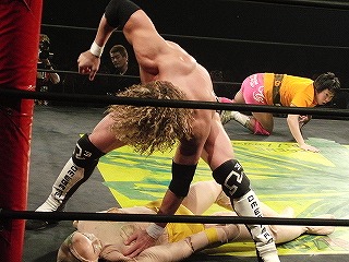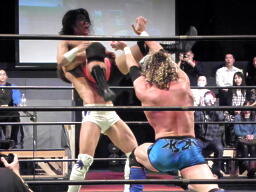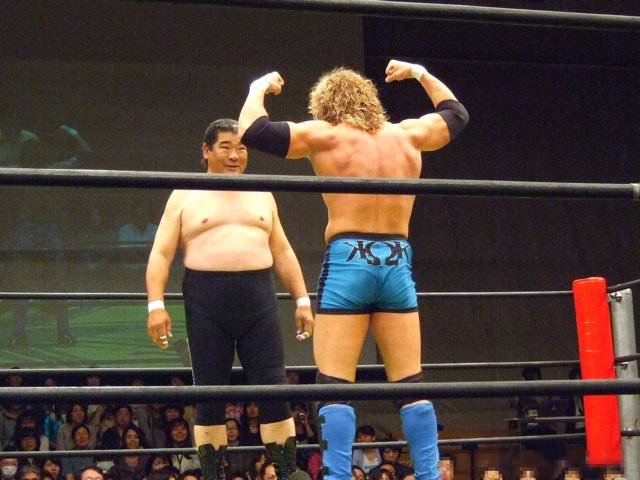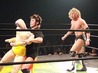 Kenny and Tomomitsu Matsunaga defeat Poison Sawada JULIE and Tiger Toguchi in just under 9 minutes. I am uncertain as to the the cause of the hostility between the two men, but Kenny and Toguchi seem to not be fans of each other: