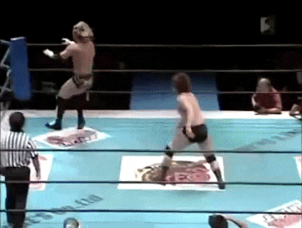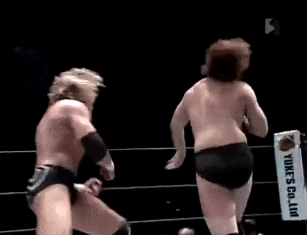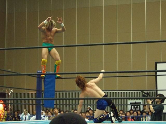 June 13 at DDT What Are You Doing? the Golden Lovers face Mr. 6 and his partner Riho. Adorableness ensues. Riho and Omega had first interacted the year prior in a mixed tag team match, however I unfortunately don’t have any footage of this. This time around, Ibushi and Omega would get their asses kicked by some ten year olds.